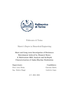 Short and Long term Investigation of Brainwave Entrainment induced by Binaural Beats: A Multivariate EEG Analysis and In-Depth Characterization of Alpha Rhythm Modulation.