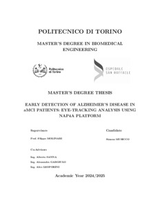 RILEVAMENTO PRECOCE DELLA MALATTIA DI ALZHEIMER NEI PAZIENTI aMCI: ANALISI DEL SEGNALE EYE-TRACKING MEDIANTE LA PIATTAFORMA NAP4A = EARLY DETECTION OF ALZHEIMER'S DISEASE IN aMCI PATIENTS: EYE-TRACKING ANALYSIS USING NAP4A PLATFORM.