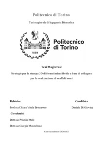 Strategie per la stampa 3D di formulazioni ibride a base di collagene per la realizzazione di scaffold ossei = Strategies for 3D printing of collagen-based systems for the realization of bone scaffolds.
