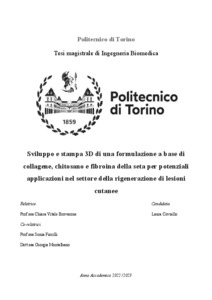 Sviluppo e stampa 3D di una formulazione a base di collagene, chitosano e fibroina della seta per potenziali applicazioni nel settore della rigenerazione di lesioni cutanee = Development and 3D printing of formulations based on collagen, chitosan and silk fibroin, for potential use in the regeneration of skin injuries.