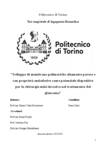 "Sviluppo di membrane polimeriche altamente porose e con proprietà antiadesive come potenziale dispositivo per la chirurgia mini-invasiva nel trattamento del glaucoma" = "Development of highly porous polymer membranes with anti-adhesive properties as a potential device for minimally invasive surgery in the treatment of glaucoma.".