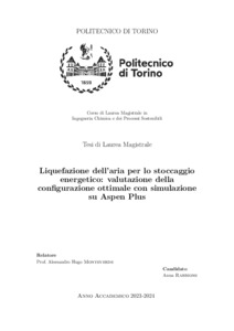 Liquefazione dell'aria per lo stoccaggio energetico: valutazione della configurazione ottimale con simulazione su Aspen Plus = Liquid Air Energy Storage: evaluation of optimal configuration based on Aspen Plus simulation.
