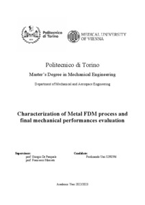 Characterization of metal FDM process and final mechanical performances evaluation.