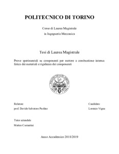 Prove sperimentali su componenti per motore a combustione interna: fatica dei materiali e rigidezza dei componenti = Experimental tests on components for internal combustion engines: fatigue of materials and stiffness of components.