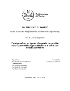 "Design of an origami shaped composite structure with application to a race car crash absorber".