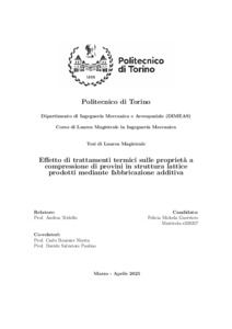 Effetto di trattamenti termici sulle proprietà a compressione di provini in struttura lattice prodotti mediante fabbricazione additiva = Effect of Heat Treatments on the Compressive Properties of Lattice Structure Specimens Produced by Additive Manufacturing.