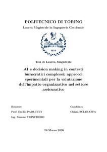 AI e decision making in contesti burocratici complessi: approcci sperimentali per la valutazione dell'impatto organizzativo nel settore assicurativo. = AI and Decision Making in Complex Bureaucratic Contexts: Experimental Approaches to Evaluating Organizational Impact in the Insurance Sector.