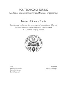 Experimental evaluation of the reactivity of iron oxides in different reaction conditions for the splitting of carbon dioxide in a Chemical Looping process.