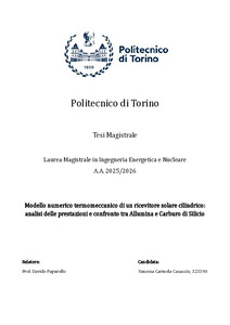 Modello numerico termomeccanico di un ricevitore solare cilindrico: analisi delle prestazioni e confronto tra Allumina e Carburo di Silicio = Thermomechanical numerical model of a cylindrical solar receiver: performance analysis and comparison between Alumina and Silicon Carbide.