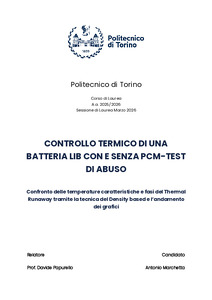 Controllo termico di una batteria LIB con e senza PCM-test di abuso = Thermal control of a LIB battery with and without PCM-abuse test.