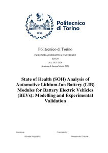 State of Health (SOH) Analysis of Automotive Lithium-Ion Battery (LIB) Modules for Battery Electric Vehicles (BEVs): Modelling and Experimental Validation.