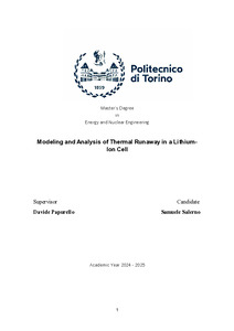 Modeling and Analysis of Thermal Runaway in a Lithium-Ion Cell.