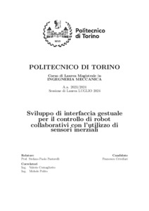 Sviluppo di interfaccia gestuale per il controllo di robot collaborativi con l'utilizzo di sensori inerziali. = Development of gestural interface for controlling collaborative robots based on inertial sensors.