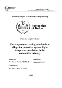 Development of coatings on titanium alloys for protection against high-temperature oxidation in the automotive industry.