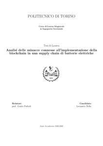 Analisi delle minacce connesse all'implementazione della blockchain in una supply chain di batterie elettriche = Building a Threat Intelligence Platform for the Automotive.