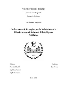 Un Framework Strategico per la Valutazione e la Valorizzazione di Soluzioni di Intelligenza Artificiale = Strategic Framework for the Evaluation and Valorization of Artificial Intelligence Solutions.