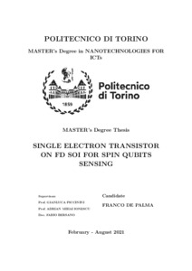 Single Electron Transistor on FD SOI for Spin Qubits Sensing.