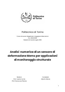 Analisi numerica di un sensore di deformazione Mems per applicazioni di monitoraggio strutturale = Numerical Analysis of a MEMS Strain Sensor for Structural Health Monitoring Applications.