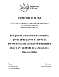Sviluppo di un modello matematico per la simulazione di prove di insensibilità alle variazioni di tensione (CEI 0-21) su Unità di Generazione Idroelettriche = Development of a mathematical model for the simulation of voltage variation insensitivity tests (CEI 0-21) on Hydropower Generating Units.