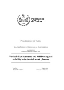 Vertical displacements and MHD marginal stability in fusion tokamak plasmas.