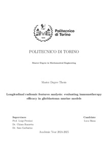 Analisi longitudinale delle features radiomiche: valutazione dell'efficacia dell'immunoterapia in modelli murini di glioblastoma = Longitudinal radiomic features analysis: evaluating immunotherapy efficacy in glioblastoma murine models.