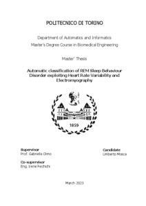 Automatic classification of REM Sleep Behaviour Disorder exploiting Heart Rate Variability and Electromyography.