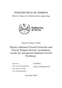 Physics Informed Neural Networks and Neural Tangent Kernel: preliminary results for parametric Optimal Control Problems.