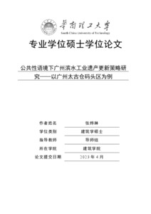 Publicness as Renewal Strategy for Guangzhou Waterfront Industrial Heritage: in the Case of Taikoo Warehouse & Wharf Area.