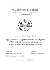 Application of the patented Idro Well System (IWS) to limit saltwater intrusion in a drinking water well in ??Reggio Calabria.