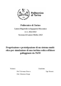 Progettazione e prototipazione di un sistema multi-elica per simulazione di una turbina eolica offshore galleggiante da 5MW = Design and prototyping of a multi-propeller system for a simulation of a 5 MW floating offshore wind turbine.