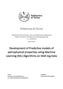 Sviluppo di modelli predittivi delle proprietà petrofisiche utilizzando algoritmi di Machine Learning (ML) su dati Well-log = Development of Predictive models of petrophysical properties using Machine Learning (ML) Algorithms on Well-log Data.
