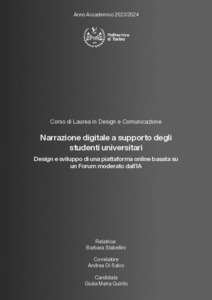 Narrazione digitale a supporto degli studenti universitari. Design e sviluppo di una piattaforma online basata su un Forum moderato dall’IA = Digital storytelling for the support of university students. Design and development of an online platform based on a AI moderate Forum.