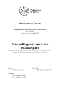 Compositing real-time in live streaming 360 - Studio e applicazione di tecniche innovative per l’inserzione di oggetti sintetici su un flusso video livestream a 360° = Real-time compositing in a 360° live streaming - Study and application of innovative techniques for the insertion of synthetic objects on a live 360° video stream.