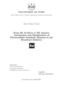 From 2D Archives to 3D Avatars: Automation and Optimization of Photorealistic Synthetic Humans in the Broadcast Industry.