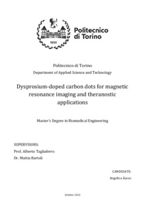 Dysprosium-doped carbon dots for magnetic resonance imaging and theragnostic applications.
