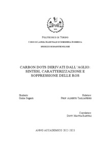 Carbon dots derivati dall’aglio: sintesi, caratterizzazione e soppressione delle ROS = Garlic-derived carbon dots: synthesis, characterization and ROS suppression.