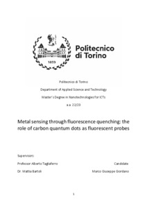 Metal sensing through fluorescence quenching: the role of carbon quantum dots as fluorescent probes.