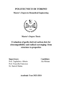Evaluation of garlic derived carbon dots for citocompatibility and radical scavenging: from structure to properties.
