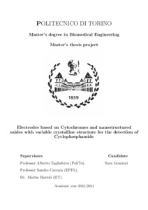 Electrodes based on Cytochromes and nanostructured oxides with variable crystalline structure for the detection of Cyclophosphamide.