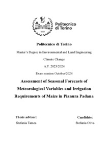 Assessment of seasonal forecasts of meteorological variables and irrigation requirements of maize in Pianura Padana.