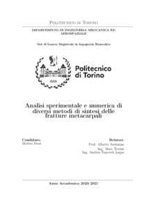 Analisi sperimentale e numerica di diversi metodi di sintesi delle fratture metacarpali = Experimental and numerical analysis of different methods of metacarpal fractures fixation.