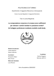 La composizione corporea e la massa sono sufficienti per stimare i carichi lombari in posizione eretta? Un’indagine preliminare mediante modello multi-body = Are body composition and mass sufficient to estimate the lumbar loads in a standing position? A preliminary study based on multi-body modeling.