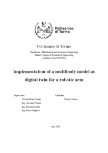 Implementation of a multibody model as digital twin for a robotic arm.