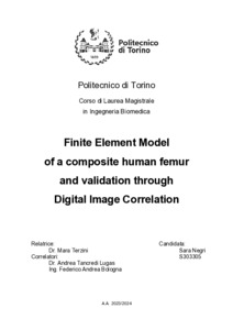 Finite Elements Model of a composite human femur and validation through Digital Image Correlation.