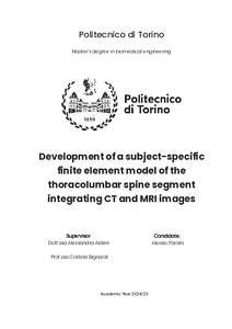Development of a subject-specific finite element model of the thoracolumbar spine segment integrating CT and MRI images.