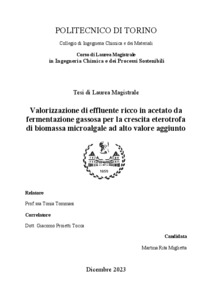 Valorizzazione di effluente ricco in acetato da fermentazione gassosa per la crescita eterotrofa di biomassa microalgale ad alto valore aggiunto = Valorization of gas fermentation acetate-rich outflow for the heterotrophic growth of valuable microalgal biomass.