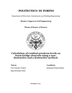 Evaluation of residual prestress levels on beam bridge elements using a non-destructive and a destructive method.