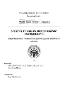 Modeling and testing of hydraulic control systems for electrified off-road vehicles.