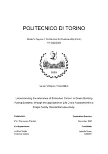 Comprendere il valore dell’Embodied Carbon nei Green Building Rating Systems attraverso l’applicazione del Life Cycle Assessment al caso studio di un edificio residenziale unifamiliare = Understanding the relevance of Embodied Carbon in Green Building Rating Systems through the application of Life Cycle Assessment in a Single-Family Residential case study.