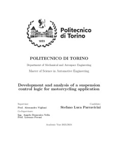Development and analysis of a suspension control logic for motorcycling application.